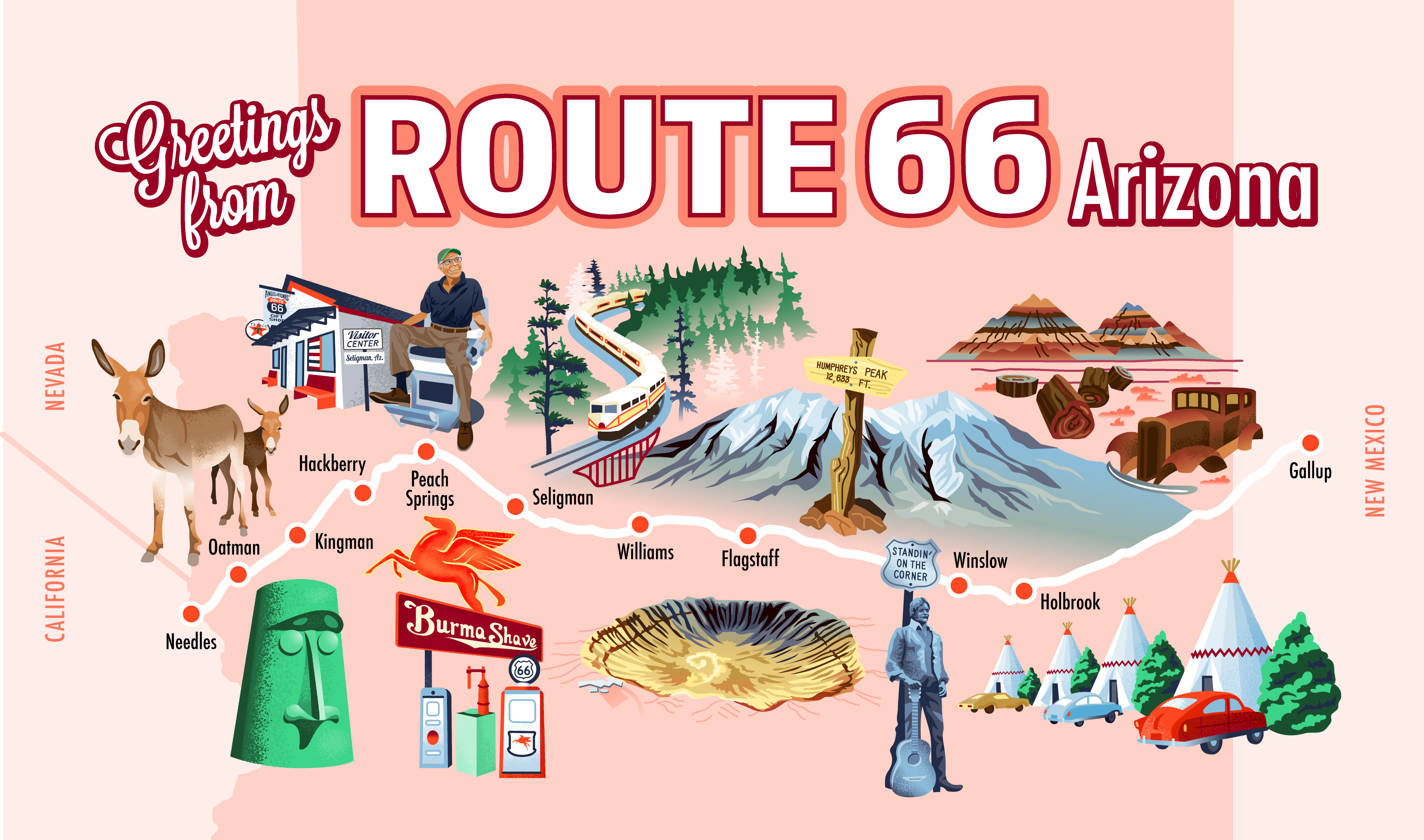 Whether heading west to east or east to west on the Mother Road, there's no shortage of quirky landmarks and iconic destinations to explore and discover along Arizona’s Route 66.