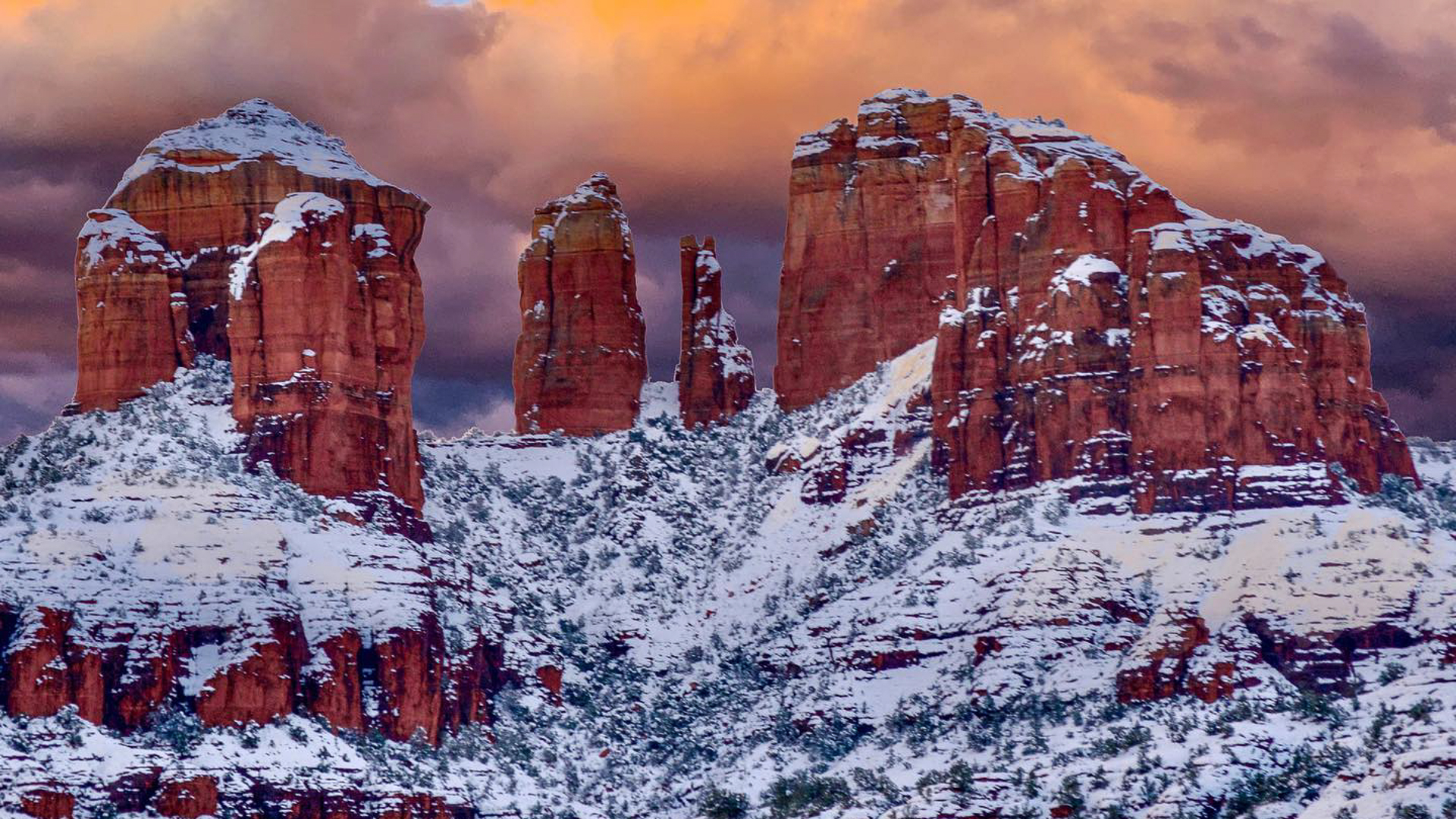 Sedona receives about 11 inches of snowfall during the winter months, just enough for white to dust the beautiful red rock formations. Enjoy the picture-perfect setting with camping and stargazing just north of Sedona in the Coconino National Forest in Oak Creek Canyon. Or stay indoors at Sedona's The Enchantment Resort, which offers stunning views of Boynton Canyon, especially after a winter snow.