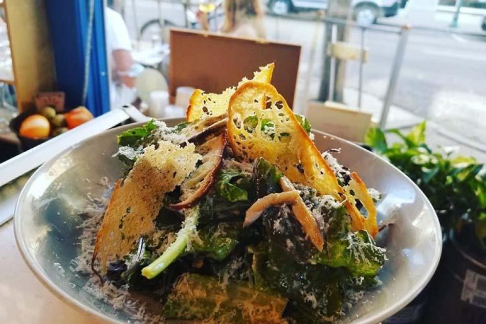 The Little Gem Caesar at Shift Kitchen + Bar comes loaded with flavor—not surprising, considering it’s tossed with pine nuts, crostini, boquerones (mild white anchovy fillets) and lemon.