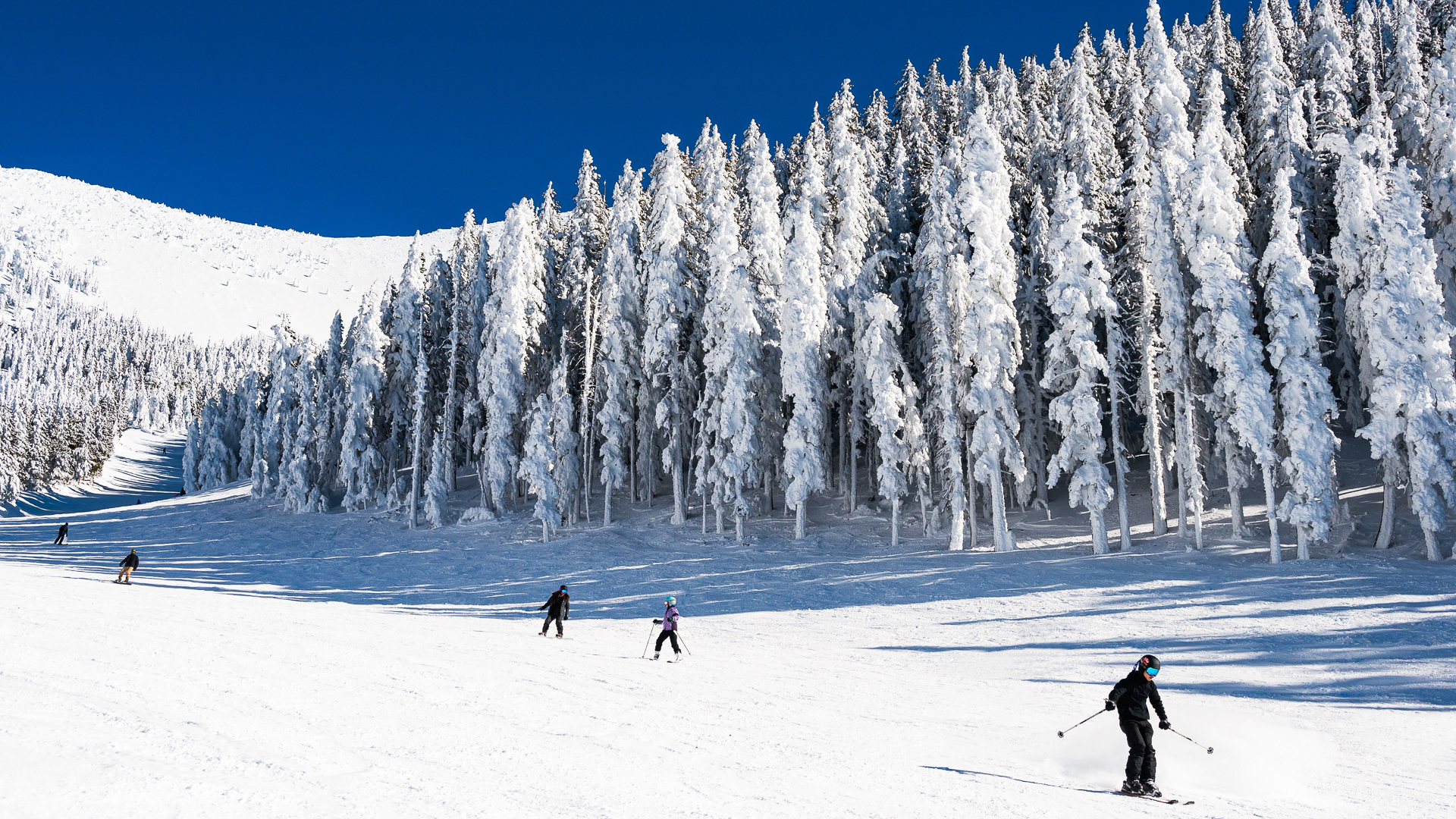 Just north of Flagstaff, a popular winter mecca, is Arizona Snowbowl. Here, Arizona's highest mountain peak—Mount Humphreys, topping out at 11,500 feet — is home to 777 skiable acres, 55 trails, eight lifts and about 260 inches of average snowfall.